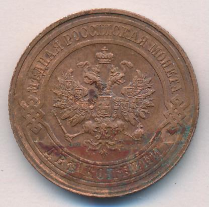 Лицевая сторона — двуглавый орел, надпись МЕДНАЯ РОССIЙСКАЯ МОНЕТА и обозначение номинала (две копейки); оборотная — обозначение номинала (2 копейки) в бусовом ободке и дата. Нормативный вес — 6,55 грамма, гурт рубчатый.
