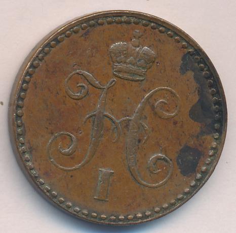 Лицевая сторона — вензель Николая I в бусовом ободке, оборотная — надпись «1 КОПЕЙКА СЕРЕБРОМ» и дата. Нормативный вес — 10,24 грамма, гурт гладкий.