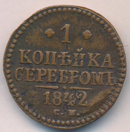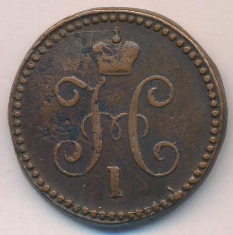 Лицевая сторона — вензель Николая I в бусовом ободке, оборотная — надпись «1 КОПЕЙКА СЕРЕБРОМ» и дата. Нормативный вес — 10,24 грамма, гурт гладкий.