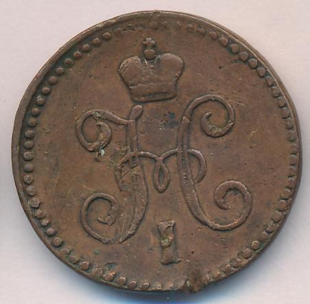 Лицевая сторона — вензель Николая I в бусовом ободке, оборотная — надпись «1 КОПЕЙКА СЕРЕБРОМ» и дата. Нормативный вес — 10,24 грамма, гурт гладкий.