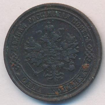 Лицевая сторона — двуглавый орел, надпись МЕДНАЯ РОССIЙСКАЯ МОНЕТА и обозначение номинала (одна копейка); оборотная — обозначение номинала (1 копейка) в бусовом ободке и дата. Нормативный вес — 3,28 грамма, гурт рубчатый.