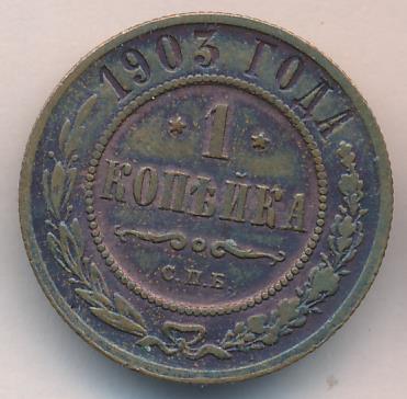 Лицевая сторона — двуглавый орел, надпись МЕДНАЯ РОССIЙСКАЯ МОНЕТА и обозначение номинала (одна копейка); оборотная — обозначение номинала (1 копейка) в бусовом ободке и дата. Нормативный вес — 3,28 грамма, гурт рубчатый.