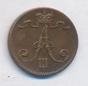 Лицевая сторона — вензель Александра II, оборотная — номинал (1 PENNIA) и дата. Нормативный вес — 1,28 грамма, гурт гладкий.