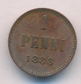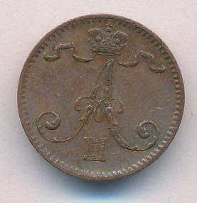 Лицевая сторона — вензель Александра II, оборотная — номинал (1 PENNIA) и дата. Нормативный вес — 1,28 грамма, гурт гладкий.