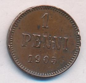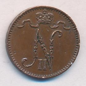 Лицевая сторона — вензель Александра II, оборотная — номинал (1 PENNIA) и дата. Нормативный вес — 1,28 грамма, гурт гладкий.