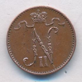 Лицевая сторона — вензель Александра II, оборотная — номинал (1 PENNIA) и дата. Нормативный вес — 1,28 грамма, гурт гладкий.