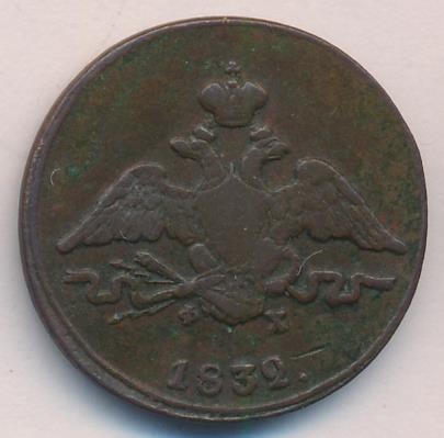 На новой серии медных монет оформление герба как на золотых (с 1817 года) и серебряных (с 1826 года), хотя еще в 1830 году было указано сделать для них орла как на платиновых. Таким образом, вышедшие в 1832 году в обращение новые медные монеты изначально имеют устаревшее оформление, а золотые и серебряные с этого же 1832 года — новое.