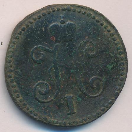 Лицевая сторона — вензель Николая I в бусовом ободке, оборотная — надпись «1 КОПЕЙКА СЕРЕБРОМ» и дата. Нормативный вес — 10,24 грамма, гурт гладкий.