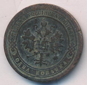 Лицевая сторона — двуглавый орел, надпись МЕДНАЯ РОССIЙСКАЯ МОНЕТА и обозначение номинала (одна копейка); оборотная — обозначение номинала (1 копейка) в бусовом ободке и дата. Нормативный вес — 3,28 грамма, гурт рубчатый.