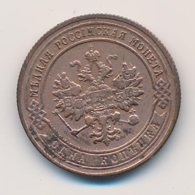 Лицевая сторона — двуглавый орел, надпись МЕДНАЯ РОССIЙСКАЯ МОНЕТА и обозначение номинала (одна копейка); оборотная — обозначение номинала (1 копейка) в бусовом ободке и дата. Нормативный вес — 3,28 грамма, гурт рубчатый.