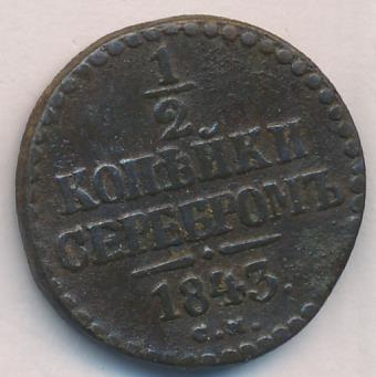 На новых монетах равенство серебряному курсу указано прямо в номинале: «1/2 КОПЕЙКИ СЕРЕБРОМ». Указ об их выпуске следует 6 сентября 1840 года («О новой медной монете на серебро 16-рублевого в пуде достоинства»). Массовая чеканка началось за год до этого на Екатеринбургском (знак ЕМ) и Сузунском (знак СМ) дворах. В качестве временной меры в 1840-1843 годах к ним подключается Ижорский завод (знак СПМ). С 1844 года после «значительного скопления медной монеты в народном обращении» в Екатеринбурге производство прекращается, а в Сузуне сокращается. Варшавский двор (знак MW), получив разрешение на выпуск общегосударственной монеты, успел отчеканить ее лишь в небольшом количестве в 1848 году.