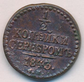 На новых монетах равенство серебряному курсу указано прямо в номинале: «1/2 КОПЕЙКИ СЕРЕБРОМ». Указ об их выпуске следует 6 сентября 1840 года («О новой медной монете на серебро 16-рублевого в пуде достоинства»). Массовая чеканка началось за год до этого на Екатеринбургском (знак ЕМ) и Сузунском (знак СМ) дворах. В качестве временной меры в 1840-1843 годах к ним подключается Ижорский завод (знак СПМ). С 1844 года после «значительного скопления медной монеты в народном обращении» в Екатеринбурге производство прекращается, а в Сузуне сокращается. Варшавский двор (знак MW), получив разрешение на выпуск общегосударственной монеты, успел отчеканить ее лишь в небольшом количестве в 1848 году.