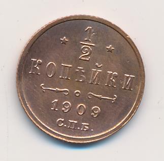 Лицевая сторона — вензель Александра II в венке из лавровой и дубовой ветвей; оборотная — обозначение номинала (1/2 копейки) и дата. Нормативный вес — 1,64 грамма, гурт рубчатый.