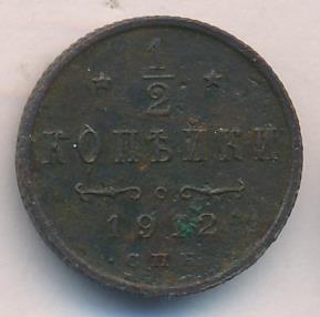 Лицевая сторона — вензель Александра II в венке из лавровой и дубовой ветвей; оборотная — обозначение номинала (1/2 копейки) и дата. Нормативный вес — 1,64 грамма, гурт рубчатый.