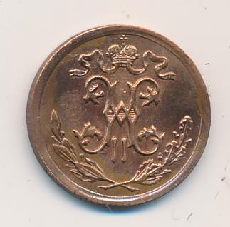 Лицевая сторона — вензель Александра II в венке из лавровой и дубовой ветвей; оборотная — обозначение номинала (1/2 копейки) и дата. Нормативный вес — 1,64 грамма, гурт рубчатый.