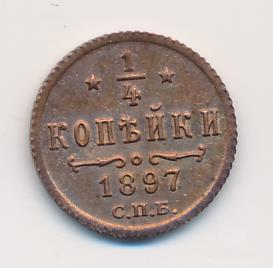Лицевая сторона — вензель Александра II в венке из лавровой и дубовой ветвей; оборотная — обозначение номинала (1/4 копейки) и дата. Нормативный вес — 0,82 грамма, гурт рубчатый.