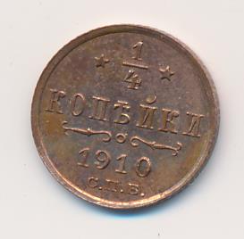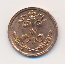 Лицевая сторона — вензель Александра II в венке из лавровой и дубовой ветвей; оборотная — обозначение номинала (1/4 копейки) и дата. Нормативный вес — 0,82 грамма, гурт рубчатый.