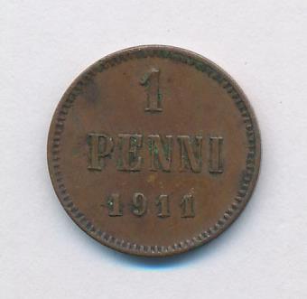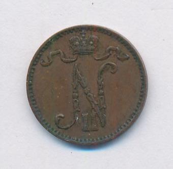 Лицевая сторона — вензель Александра II, оборотная — номинал (1 PENNIA) и дата. Нормативный вес — 1,28 грамма, гурт гладкий.