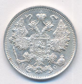 Лицевая сторона — гербовый орел, оборотная —обозначение номинала (15 копеекъ), окруженное венком из лавровой и дубовой ветвей и дата.