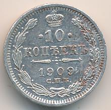 Лицевая сторона — гербовый орел, оборотная —обозначение номинала (10 копеекъ), окруженное венком из лавровой и дубовой ветвей и дата.