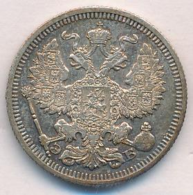Лицевая сторона — гербовый орел, оборотная —обозначение номинала (20 копеекъ), окруженное венком из лавровой и дубовой ветвей и дата.
