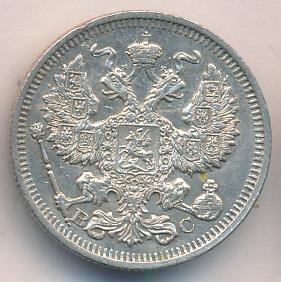Лицевая сторона — гербовый орел, оборотная —обозначение номинала (20 копеекъ), окруженное венком из лавровой и дубовой ветвей и дата.