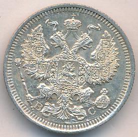 Лицевая сторона — гербовый орел, оборотная —обозначение номинала (20 копеекъ), окруженное венком из лавровой и дубовой ветвей и дата.