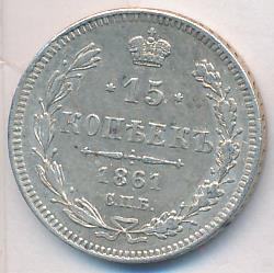 Лицевая сторона — гербовый орел, оборотная —обозначение номинала (15 копеекъ), окруженное венком из лавровой и дубовой ветвей и дата.