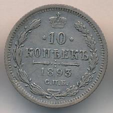 Лицевая сторона — гербовый орел, оборотная —обозначение номинала (10 копеекъ), окруженное венком из лавровой и дубовой ветвей и дата.