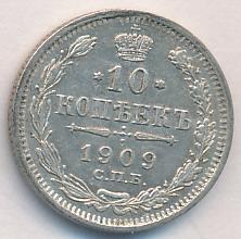Лицевая сторона — гербовый орел, оборотная —обозначение номинала (10 копеекъ), окруженное венком из лавровой и дубовой ветвей и дата.