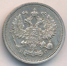 Лицевая сторона — гербовый орел, оборотная —обозначение номинала (10 копеекъ), окруженное венком из лавровой и дубовой ветвей и дата.