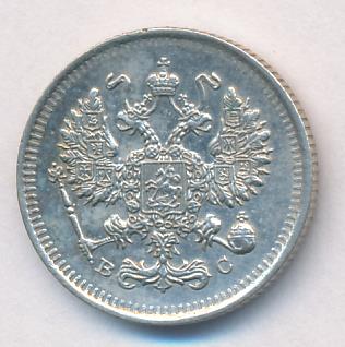 Лицевая сторона — гербовый орел, оборотная —обозначение номинала (10 копеекъ), окруженное венком из лавровой и дубовой ветвей и дата.