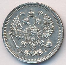 Лицевая сторона — гербовый орел, оборотная —обозначение номинала (10 копеекъ), окруженное венком из лавровой и дубовой ветвей и дата.