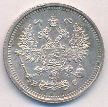 Лицевая сторона — гербовый орел, оборотная —обозначение номинала (10 копеекъ), окруженное венком из лавровой и дубовой ветвей и дата.