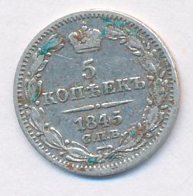 Лицевая сторона — новый гербовый орел с поднятыми крыльями, оборотная —обозначение номинала (5 копеекъ), окруженное венком из лавровой и дубовой ветвей и дата. Проба — 868, нормативный вес — 1,04 грамма.