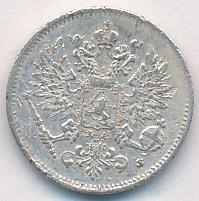 Лицевая сторона — российский двуглавый орел с гербом Великого княжества Финляндского на груди, оборотная — номинал и дата в венке из дубовых листьев. Проба — 750, нормативный вес — 1,27 грамма, гурт рубчатый.