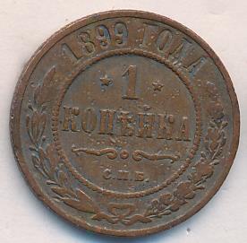 Лицевая сторона — двуглавый орел, надпись МЕДНАЯ РОССIЙСКАЯ МОНЕТА и обозначение номинала (одна копейка); оборотная — обозначение номинала (1 копейка) в бусовом ободке и дата. Нормативный вес — 3,28 грамма, гурт рубчатый.
