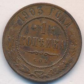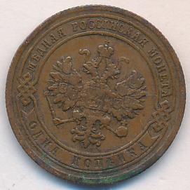 Лицевая сторона — двуглавый орел, надпись МЕДНАЯ РОССIЙСКАЯ МОНЕТА и обозначение номинала (одна копейка); оборотная — обозначение номинала (1 копейка) в бусовом ободке и дата. Нормативный вес — 3,28 грамма, гурт рубчатый.