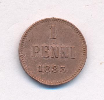Лицевая сторона — вензель Александра II, оборотная — номинал (1 PENNIA) и дата. Нормативный вес — 1,28 грамма, гурт гладкий.