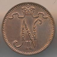 Лицевая сторона — вензель Александра II, оборотная — номинал (1 PENNIA) и дата. Нормативный вес — 1,28 грамма, гурт гладкий.