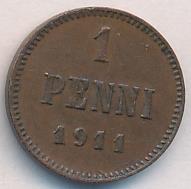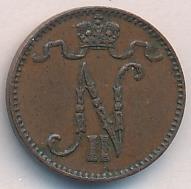 Лицевая сторона — вензель Александра II, оборотная — номинал (1 PENNIA) и дата. Нормативный вес — 1,28 грамма, гурт гладкий.