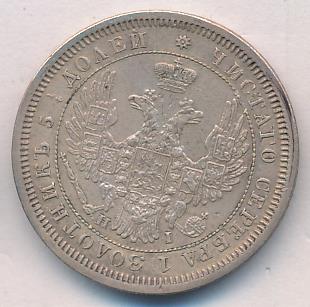 Лицевая сторона — новый гербовый орел с поднятыми крыльями и надпись «ЧИСТОГО СЕРЕБРА 1 ЗОЛОТНИКЪ 5 ДОЛЕЙ», оборотная —обозначение номинала (25 копеекъ), окруженное венком из лавровой и дубовой ветвей и дата.