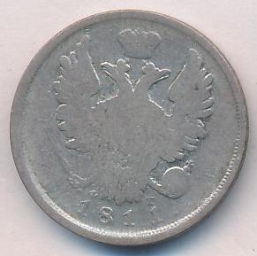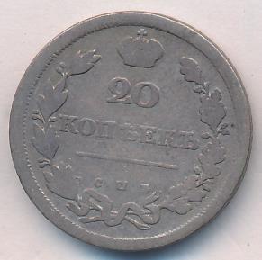 Лицевая сторона - двуглавый орел и дата, оборотная — обозначение номинала (20 копеекъ) в венке из лавровой и дубовой ветвей. Проба до 1813 года — 750, нормативный вес — 4,80 грамма; после 1813 года — проба 868, нормативный вес — 4,15 грамма.