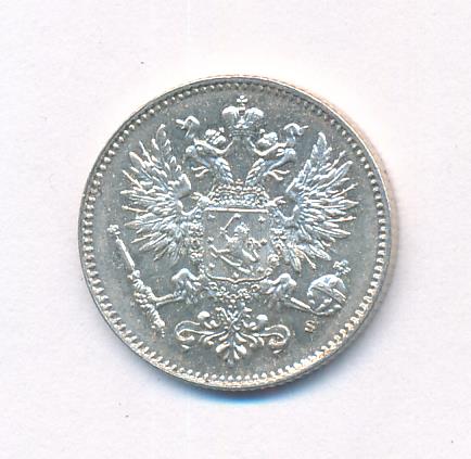 Лицевая сторона — российский двуглавый орел с гербом Великого княжества Финляндского на груди, оборотная — номинал и дата в венке из дубовых листьев. Проба — 750, нормативный вес — 2,55 грамма, гурт рубчатый.