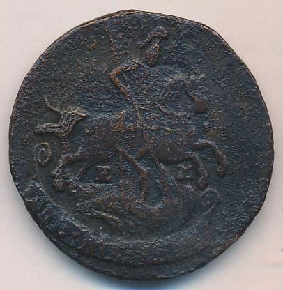 Лицевая сторона — Георгий Победоносец и обозначение номинала (две копейки) в картуше, оборотная — вензель Екатерины II и дата. Нормативный вес — 20,48 грамма, гурт — сетка или шнур.