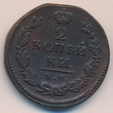 Манифестом от 29 августа 1810 года для медных монет всех номиналов стопа увеличивается в полтора раза и становится 24 рубля из пуда. В следующие два десятилетия по этой норме чеканятся только двухкопеечники, копейки и деньги, призванные ликвидировать нехватку разменной монеты. В оформлении монет вместо кольцевых ободков на оборотной стороне размещается венок из лавровой и дубовой ветвей, как на серебряной монете.