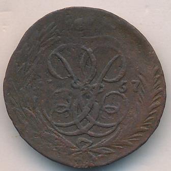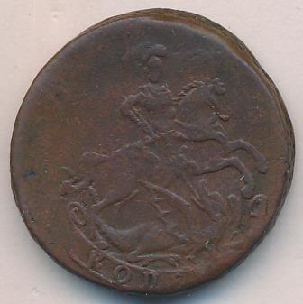 Производство ведется на московском Красном, Екатеринбургском и Сестрорецком дворах. Лицевая сторона — Георгий Победоносец и обозначение номинала (копейка) в картуше, оборотная — сложный симметричный вензель Елизаветы Петровны и дата. Нормативный вес — 10,24 грамма, гурт — сетка.