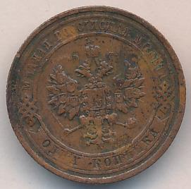 Лицевая сторона — двуглавый орел, надпись МЕДНАЯ РОССIЙСКАЯ МОНЕТА и обозначение номинала (одна копейка); оборотная — обозначение номинала (1 копейка) в бусовом ободке и дата. Нормативный вес — 3,28 грамма, гурт рубчатый.