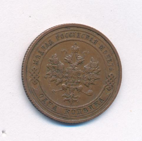 Лицевая сторона — двуглавый орел, надпись МЕДНАЯ РОССIЙСКАЯ МОНЕТА и обозначение номинала (одна копейка); оборотная — обозначение номинала (1 копейка) в бусовом ободке и дата. Нормативный вес — 3,28 грамма, гурт рубчатый.