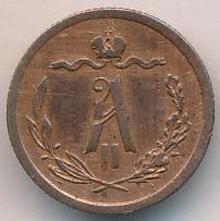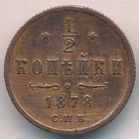 Лицевая сторона — вензель Александра II в венке из лавровой и дубовой ветвей; оборотная — обозначение номинала (1/2 копейки) и дата. Нормативный вес — 1,64 грамма, гурт рубчатый.